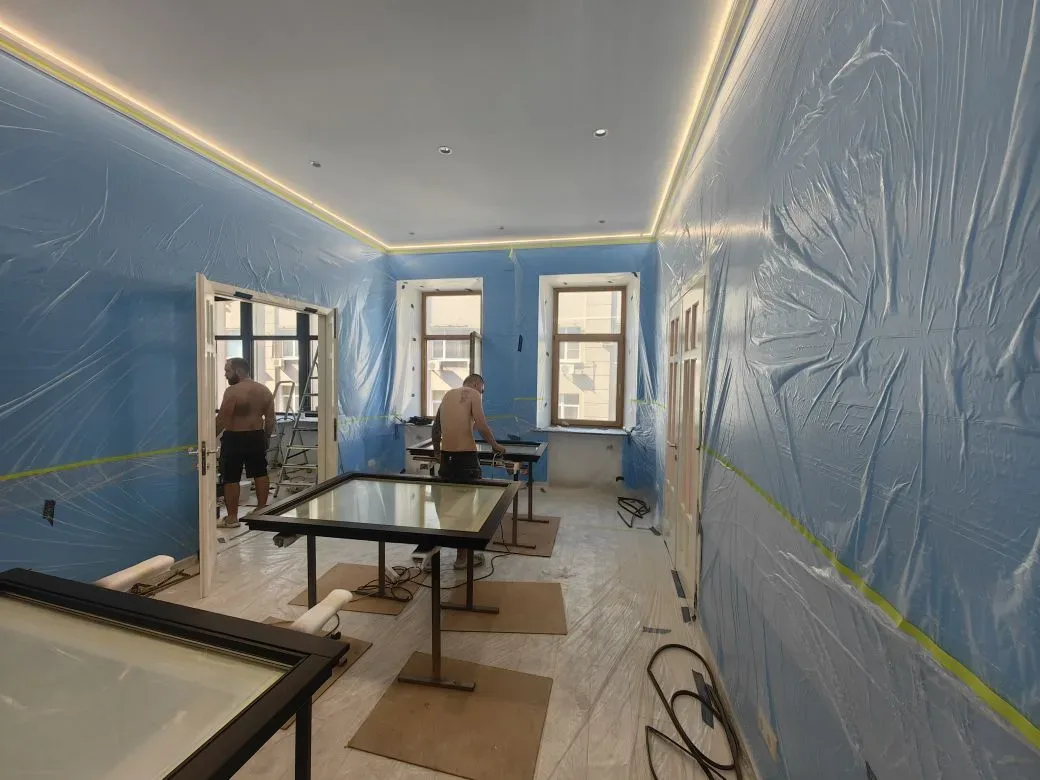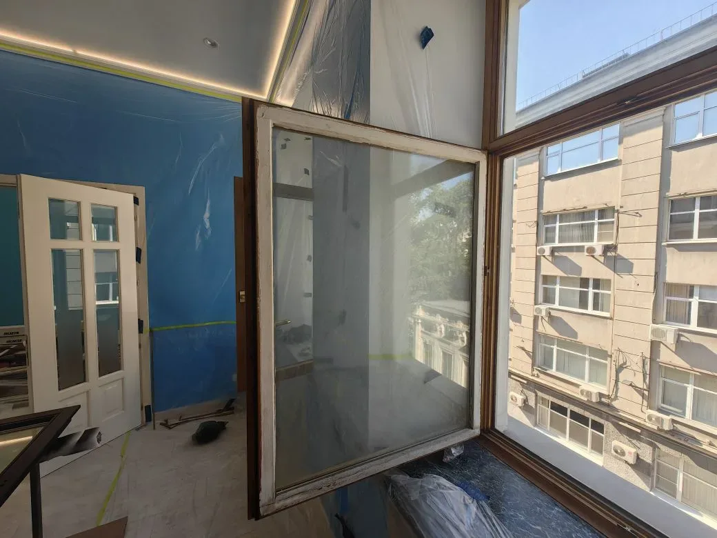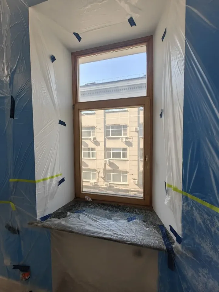 Покраска дубовых окон в квартире в чёрный цвет (Москва, Таганка)